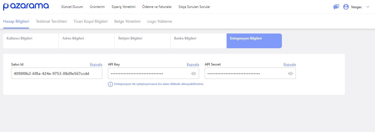 - Entegrasyon Bilgileri başlığına tıklayın.