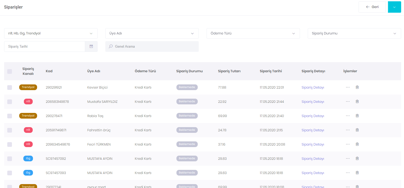 Pobolapi sayesinde kurulumunu gerçekleştirdiğiniz tüm pazaryerlerinden gelen siparişleri tek bir panelde listeleyebilirsiniz.